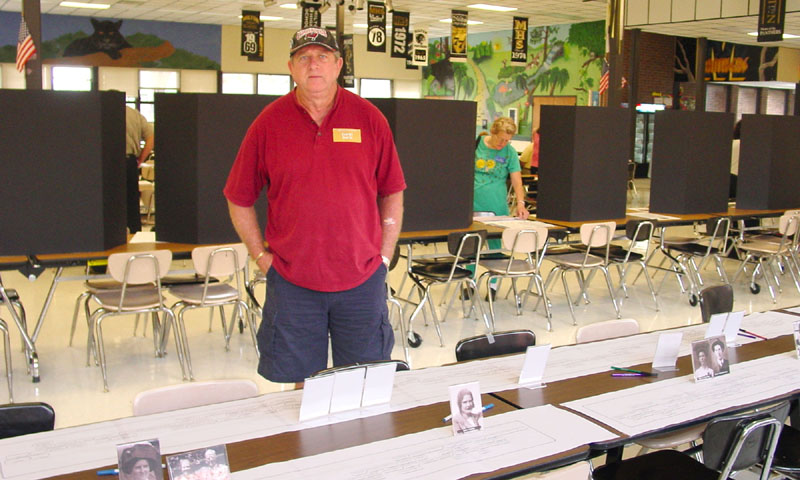 David Eugene Davis, great grandson of James Fountain Cooper, standing near the Susannah Demerah Cooper section of the descendants scrolls.
